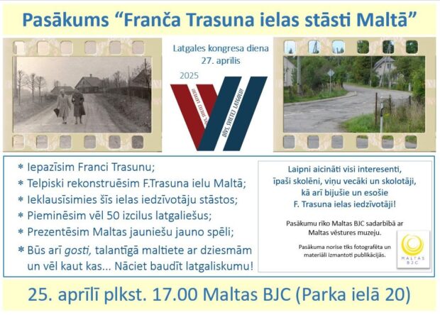 25. aprelī divejuos stuņdēs dīnā Leivuonā, multifunkcionalajā jaunuotnis iniciativu centrā “Kvartāls”, jau trešū godu byus Latgolys kongresa dīnai veļteita nūtikšona, kas, ļaunūt jaunīšim īpasazeit ar Latvejā pazeistamim latgalīšim i jūs stuostim, ite palykuse jau par tradiceju. Ituo gods Latgolys dīnā Leivuonā pi jaunīšu gostūs byus grupa “Latgalīšu Reps”, bet pīcuos stuņdēs piecpušdīnē Rēzeknis nūvoda Maltys bārnu i jaunīšu centrys aicynoj iz Latgolys kongresa dīnai veļteitu nūtikšonu “Fraņča Trasuna īlys stuosti Maltā”, kurā byus vareiba izzynuot vaira par Fraņci Trasunu, īsaklauseit Trasuna īlys dzeivuotuoju stuostūs, kai ari tiks prezentāta jauna Maltys jaunīšu spēle.