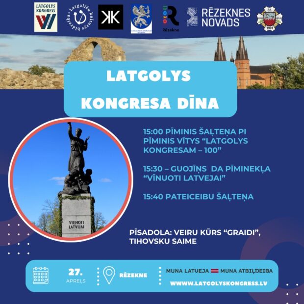 Svātdiņ, 27. aprelī, jau septeitū reizi tiks atzeimuota Latgolys kongresa dīna. Jei svietejamūs i atzeimojamūs dīnu sarokstā īraksteita 2018. godā i pyrmū reizi atzeimuota 2019. godā. Itūgod Latgolys kongresa dīnai veļteituos nūtikšonys paradzātys Leivuonā, Rēzeknē, Maltā i cytuos vītuos. Latgalīšu kulturys ziņu portals pīduovoj Latgolys kongresa dīnai veļteitūs, kai i itamuos dīnuos cytu latgaliski paradzātūs nūtikšonu apkūpuojumu.