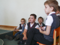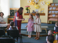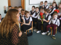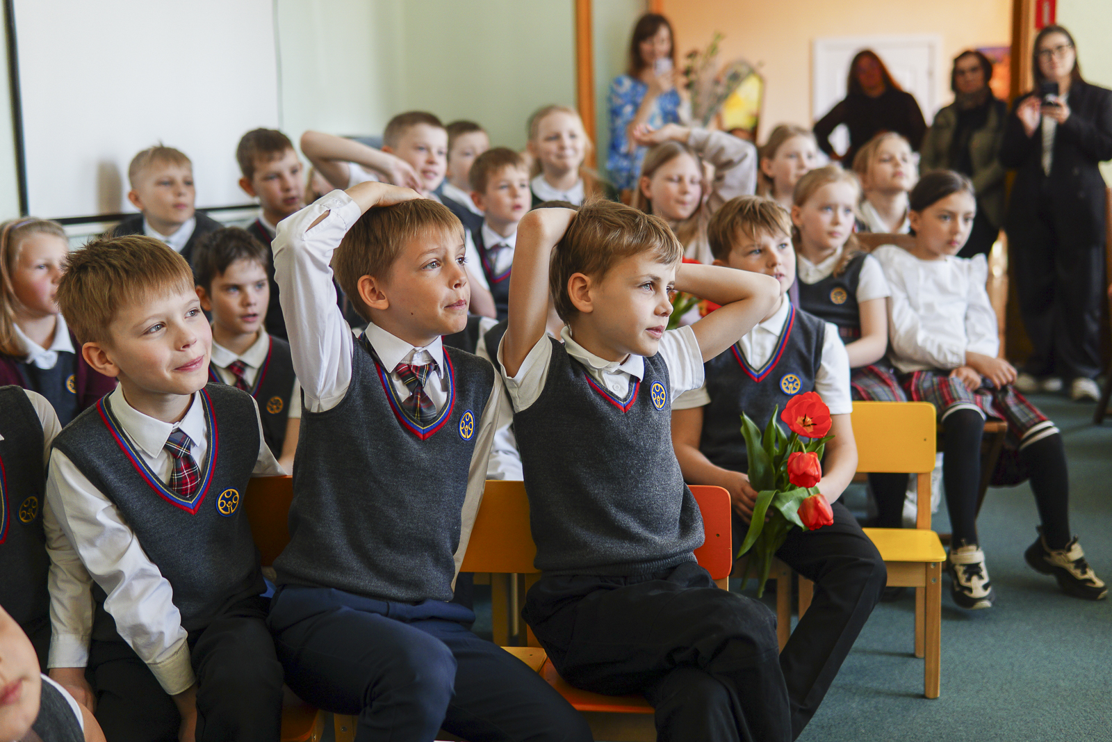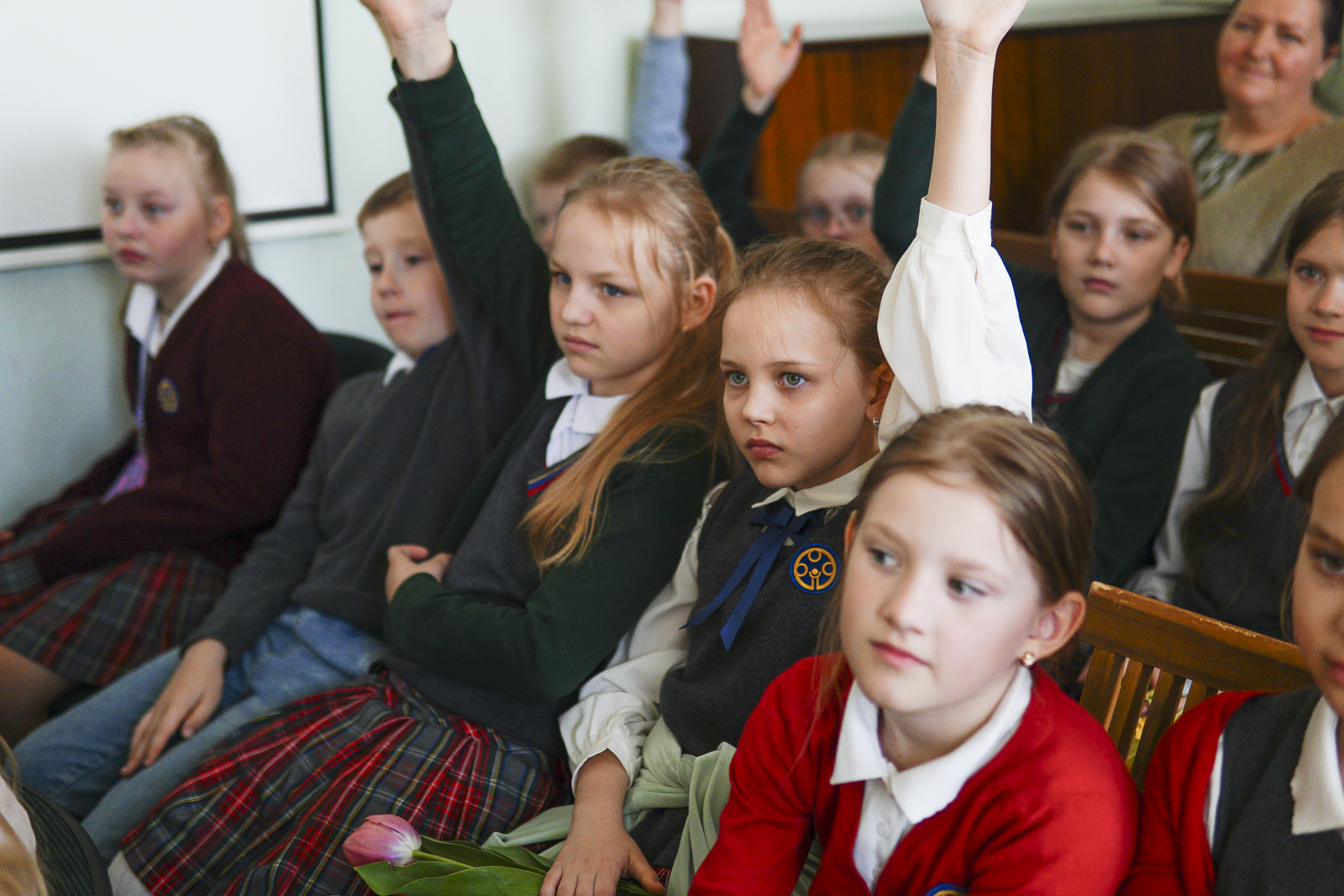 Gruomotys prezentacejā gostūs beja ari Rēzeknis Katuoļu vydsškolys jaunuokūs klašu bārni, kas aktivi klausejuos puosokys i pīsadaleja latgaliskūs vuordu miniešonā. Vaicuoti, voi saprūt latgaliski, gondreiž vysi bārni cēle rūkys, bet iz vaicuojumu, voi kasdīnā runoj latgaliski, apstyprynojūši atsaceja viņ nalela daļa. Vīna nu aktivuokūs klauseituoju beja ūtruos klasis škoļneica Kristiāna, kurei beja tūs bārnu vydā, kas kasdīnā runoj latgaliski. Kai jei pastuosteja portalam lakuga.lv, latgaliski pamatā runoj ar vacuokim sātā i draugim, bet školā vystik tū saīmūt dareit reši. Kristiāna pyrmuo pareizi zynuoja atsacejumu iz vaicuojumu i bolvā sajēme jaunū gruomotu, kas byušūt juos pyrmuo gruomota latgaliski. Vaicojūt, kai jai ruodīs, vai nabyus gryuts skaiteit i vysu varēs saprast, meitine dūmeigi, bet ar smaidu pībiļde: “Pļus minus!”