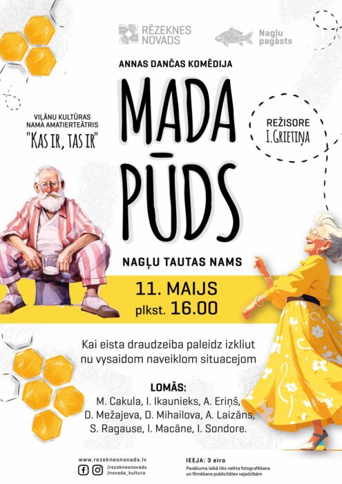 Ari Rēzeknis nūvoda Nagļu pogostā Muotis dīna tiks svieteita ar gostu teatra izruodi – Viļānu kulturys noma amaterteatra “Kas ir, tas ir” īstudātū Annys Dančys komedeju “Mada pūds”. Tamā skateituoji varēs izzynuot, kai eista draudzeiba paleidz tikt uorā nu vysaidu naveiklu situaceju.
