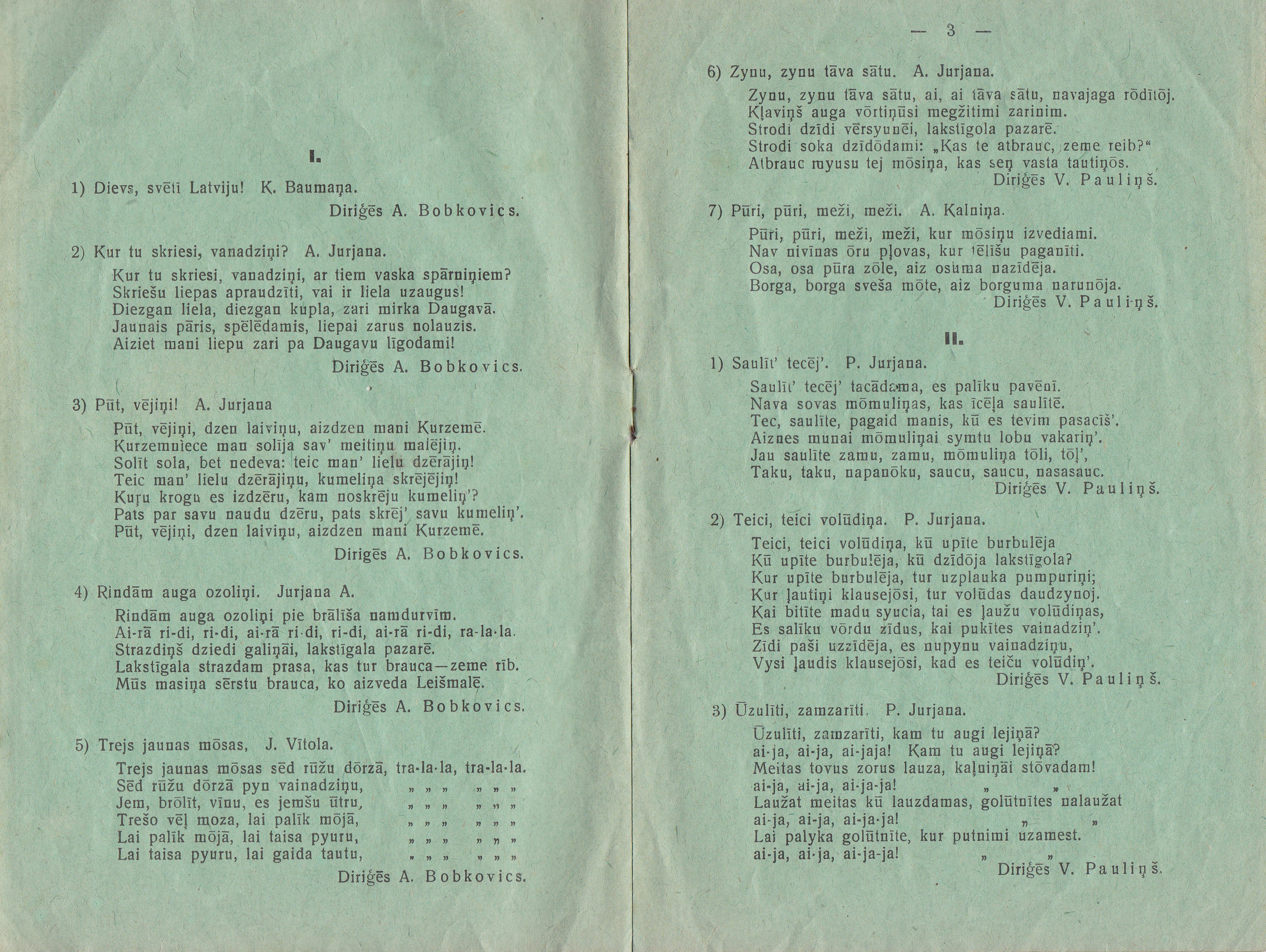 [3] 1940. g. Latgales dziesmu svētki, Daugovpiļs: Latvīšu bīdreibys izdavums, 21.–22. pl.