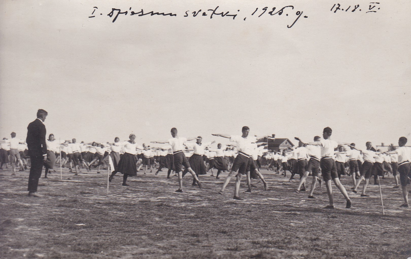 Kai tyka mynāts, nuokušajā dīnā, 18. majā, nūtyka sporta svātki: “Pļkst. 4 p.p. suokuos vyngruotuoju guojīņs pa īlom iz sporta laukumu. [..] Lelysku un skaistu īspaidu atstuoja 1000 vyngruotuoju ritmiskys kusteibys. Piec tuo suokuos saceikstis lūdis gryusšonā, tuoļliekšonā, augstliekšonā, skrīšonā utt. Pyrmū vītu saceikstēs ījēme Rēzeknis latvīšu vaļsts vydsskūla. Te daleibu jēme ari Rēzeknis pedagogiskuo vydsskūla, Varakļuonu vydsskūla, Aglyunys realgimnazeja i Daugpiļs orūdu skūla. Ībraucieju stuovūklis beja daudz gryutuoks, jo 4 dīnys nabaudeja normalys atpyutys un ari puortykys.”[8]
