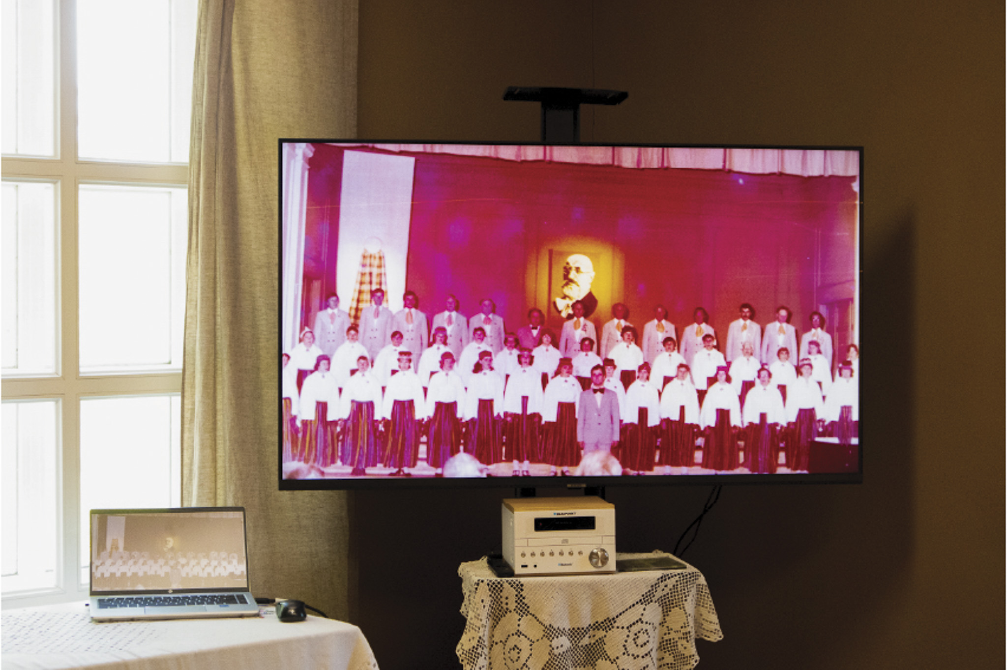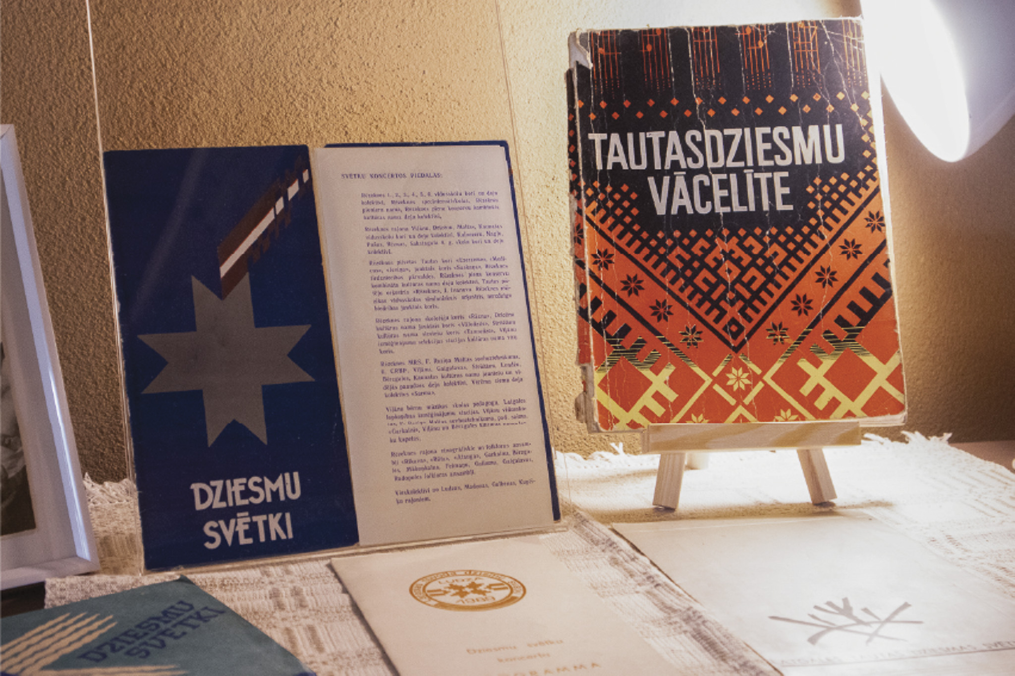 “Veidojūt itū izstuodi, es gribieju likt uzsvoru na tik iz Ontonu, bet ari iz laika paralelem i viesturis nūtikšonom, kas ir bejušys. Lai kaidi ir bejuši padūmu laiki, Ontonam tī beja spāka godi, leidz ar tū jis izapaude tik stypri, cik tys laiks atļuove. 1973. godā Vyspuorejim Latvejis dzīšmu svātkim beja simtgade. Ir taida legenda, kū apstyprynoj Voldemārs Ivdris – Matvejāns iz symtgadis dzīšmu svātku jubileju beja sapuļciejs symts daleibnīku lelu kori kei veļtejumu symtgadei,” stuosta Diāna Saksone, kas ir izstuodis idejis autore i Matvejāna škoļneica. “Izstuodē varim apsavērt tautys tārpu i saleidzynuot ar tagadejūs laiku praseibom. Zynim, ka tagad skatēs tautu tārpus viertej piec etnografiskajom zeimem i cytim kriterejim, bet tymūs laikūs – kaids tys bruņcs beja, taidu jū ari vylka. Tei ir taida myusu viesture, it eipaši tim, kuri ir dzīduojuši.”