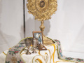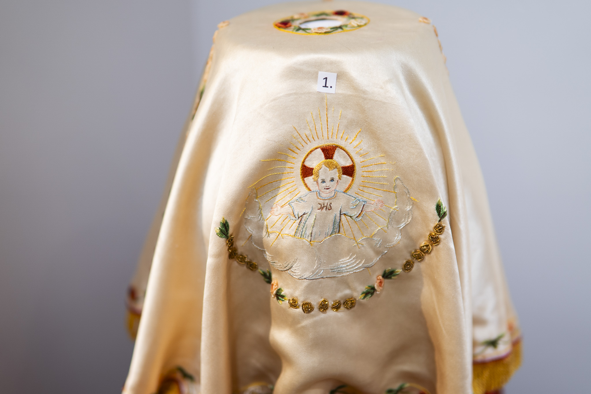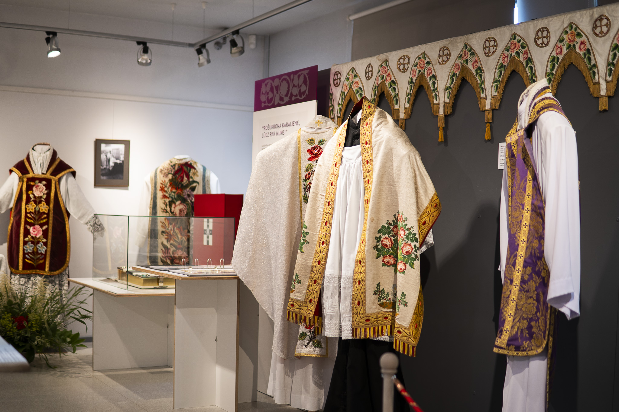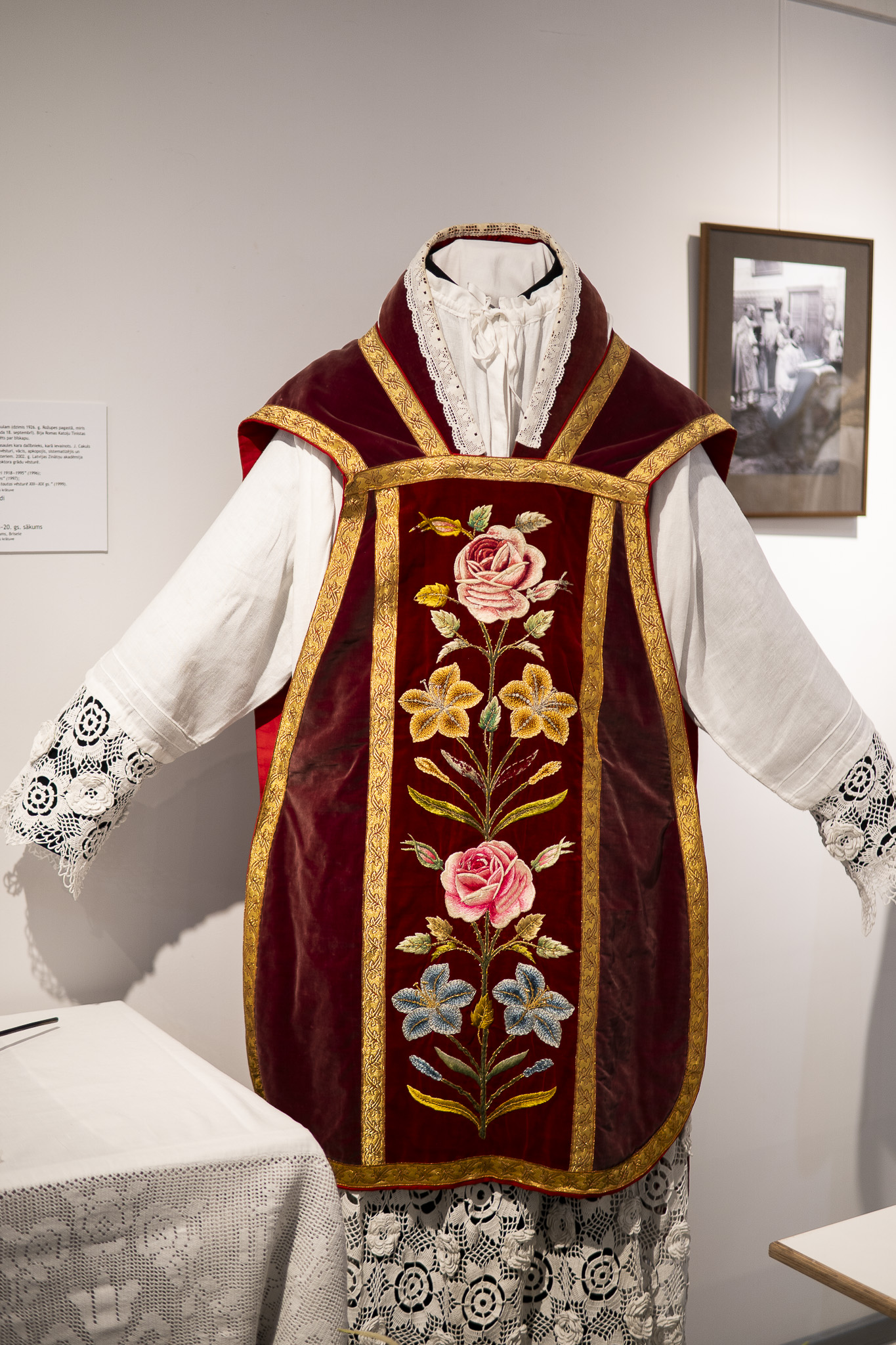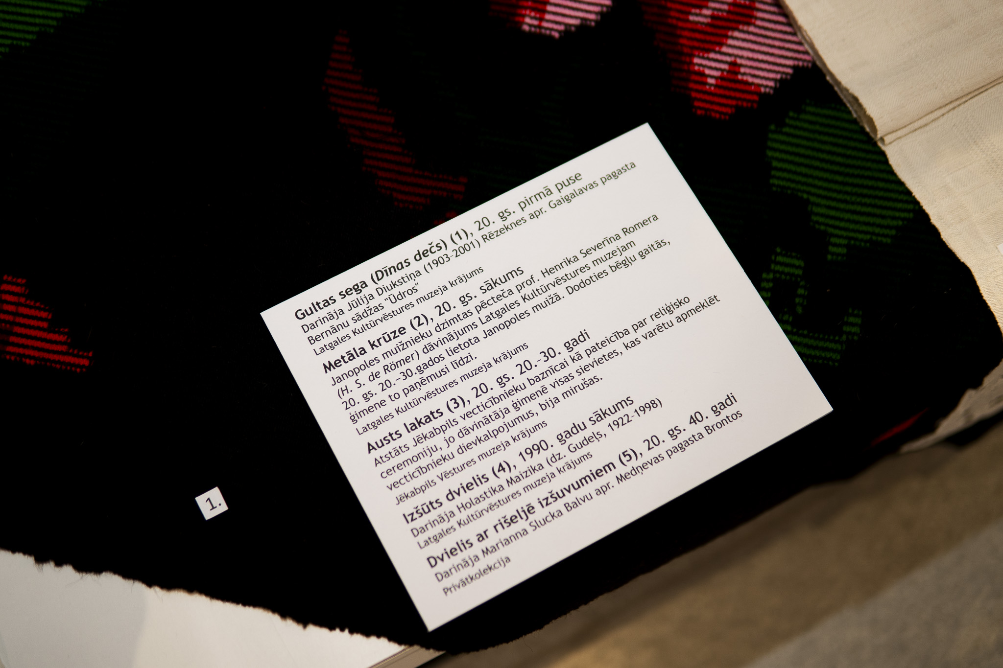 Interesanti, ka itūreiz izstuodē nav tik Latgolys Kulturviesturis muzeja kruojuma duorgumi, tok ari eksponati nu Latvejis Romys katuoļu draudzem i cytim Latvejis muzejim, tūs vydā ari nu Jākubpiļs Viesturis muzeja, Aizputis Nūvodpietnīceibys muzeja, Preiļu Viesturis i lītiškuos muokslys muzeja i ari Līpuojis diecezis liturgiskūs tekstileju kruotivis.