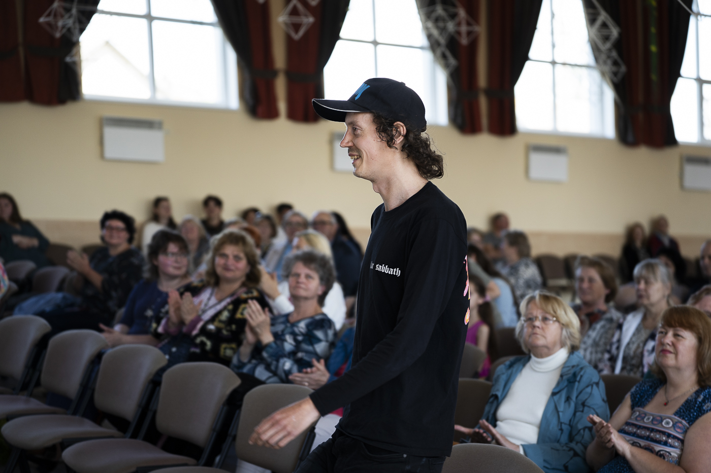 “Muns vactāvs beja Pīters, muna veira styprynuotais vuords ir Pīters, kūpā pazeistu kaidus pīcus. Pīterdīna ir breineigs pasuokums, kod var nūbraukt gostūs iz Rogovku. Ruodīs, ka ite kluotīnē byušu pyrmū reizi. Es ari īsyuteju sovu dzeju literatu konkursam. Saprūtu, ka byus cīši dzīšmuots pasuokums, sagaidu lobys emocejis i byušonu kūpā. Itymā pasuokumā var satikt rodūšus i seņ naradzātus cylvākus,” tai pyrma pasuokuma saceja literate Inga Kaļva-Minina.