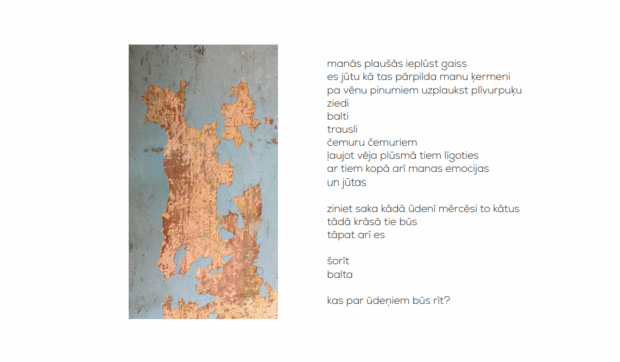 “Tuos nabeja intervejis, tys nabeja koč kaids cīši, cīši konkrets aizdavums. Tei beja taida gribiešona – ka vystik ir kū pasaceit, paraudzeit taidu pošreflekseju i dreižuok taidu pošterapeju sataiseit ar itū. I itaidā veidā saguoja dzejūļu kūpa – Annys Sintijis Ivanovys dzejūli –, tī ir stuosti nu cīši dažaidu perspektivu par tū, kas mes asam i kur mes īmam. Tī ir stuosti pūliski, latvyski, latgaliski, krīvyski, ukraiņu volūdā. Tys ir taids antropologiskys skatejums iz tū, kas te nūteik i kai mes cīši dažaidi redzim gaišū Latgolys i Latvejis byušonu iz prīšku voi itū šaļti. Cīši forši, ka tī ir cīši daudz Martys Folkmanis ilustraceju i fotografeju,” sovuos puordūmuos pasadola “New East” vadeituojs.