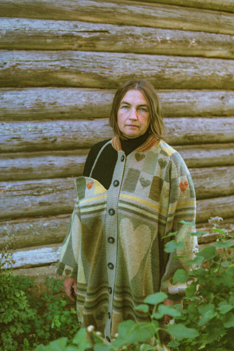 Ūtra cykla jaka beja saisteita ar Laimys dzymtys sīvīšu linejis montuotajim izšyutajim dečim i jūs saglobuošonu. “Muna baba jūs cīši saudzeigi globuoja i pat var saceit, ka naaiztyka. Tys ir cīši vierteigs materials, kurū gribieju izceļt, tok muns mierkis beja, kab nivīns nu itūs senejūs materialu natyktu aiztykts i sagrīzts. Izmontuoju zero waste tehniku – sašyvu kūpā, izveidojūt breiva pīgrīzuma jaku, tai paruodūt ari saudzeigu attīksmi i cīnu pret autentiskū materialu.”