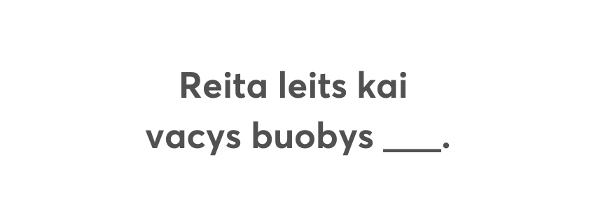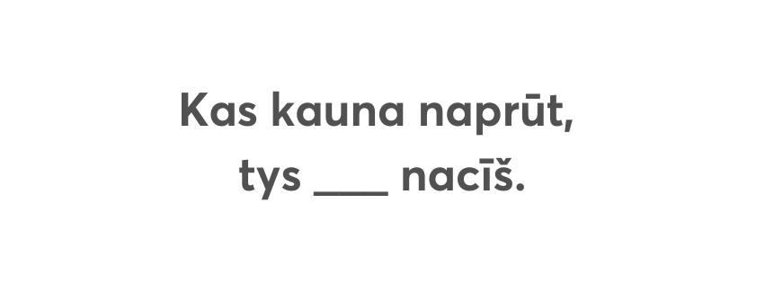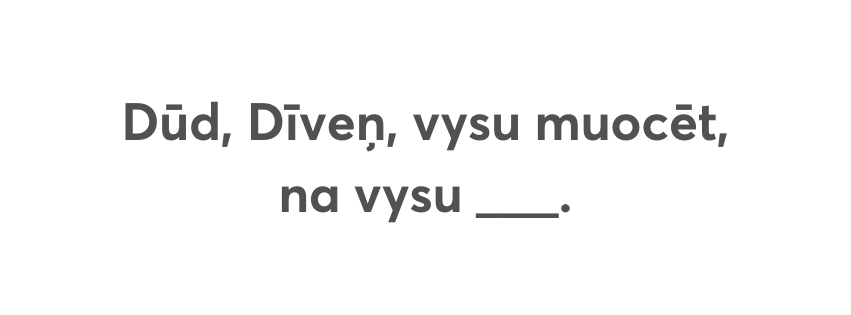 Izpyldūt itū testu, varit puorbaudeit, cik labi puorzynojat sokomvuordus i parunys, voi ari aizajimt kaidu tautys gudreibu sovys volūdys boguotynuošonai!