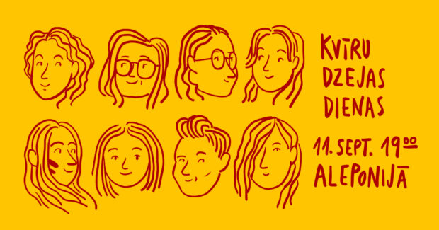 11. septembrī 19 stuņdēs bārā “Aleponija” (Ernesta Birznieka-Upīša īla 22) nūtiks Kvīru dzejis dīnys skaitejumi, kurūs tradicionali reikoj bīdreiba “Latvijas PEN”. Īrostai dzejis skaitejumi teik reikuoti par politiski i sociali aktualom temom, itūgod pasuokums byus veļteits kvīru dzejai, i tymā pīsadaleis Ausma Perons, Evelīna Mūrniece, Džoela Teilore, Elīna Kokareviča i Agnese Radziņa, ar performanci uzastuos Kriss Odze i mygluojs. Vokoru vadeis dzejneica Katrīna Rudzīte. Pasuokuma mierkis ir radeit drūsu telpu vysaidom pīredzem i identitatem, veicynojūt empateju i pīdareibys sajiutu. Īīšona par breivu.