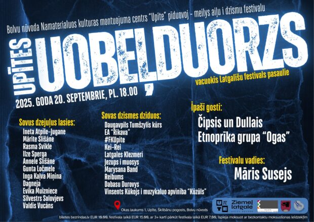 20. septembrī 18 stuņdēs Bolvu nūvoda Upītē vacuokais latgalīšu festivals pasaulē aicynoj iz pasuokumu “Upītes uobeļduorzs”. Tys ir vīneigais festivals, kurs kotru godu puļcej latgalīšu literatus i muzikus, īpazeistynojūt i ar jaunim vuordim latgalīšu kulturā, i aicynojūt latgalīšu muzyku i literaturu atkluot sevkuram interesentam. Itūgod muzykalū prīšknasumu storplaikūs sovus dorbus skaiteis Ineta Atpile-Jugane, Mārīte Slišāne, Rasma Svikle-Popova, Ilze Sperga, Annele Slišāne, Gunta Ločmele, Inga Kaļva-Minina, Dagneja, Evika Muizniece, Silvestrs Solovjevs i Valdis Vucāns.