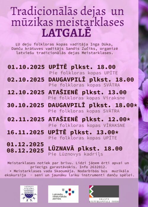 Itymā rudinī Upītē, Daugovpilī, Lūznovā i Atašīnē bīdreiba “Danču krātuve” i bīdreiba “Baltfolk” sadarbeibā ar bīdreibu “Skaņumāja” reikoj bezmoksys tradicionaluos dejis i muzykys meistarklasis, kab dziļuok īsavuiceit tradiceju.