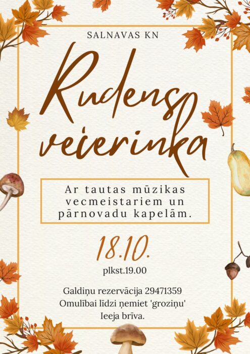 Kaids gon nedelis gols bez balliešonys i doncuošonys! Vysi, kam pateik ļusteigi padoncuot i baudeit lobu muzyku, teik aicynuoti iz Ludzys nūvoda Saļņovys kulturys nomu, kur 18. oktobra vokorā byus Rudiņa večerinka. Tī jius gaida pamateiga kuoju izlūceišona vairuoku kapelu muzykys ritmūs. Natryuks ari pošu saļņovīšu kapelys “Sveicynojam, vielejam”, jī, piec pīredzis zynu, vysod “sprydzynoj”. Tiksimēs Saļņovā, byus ļusteigi!
