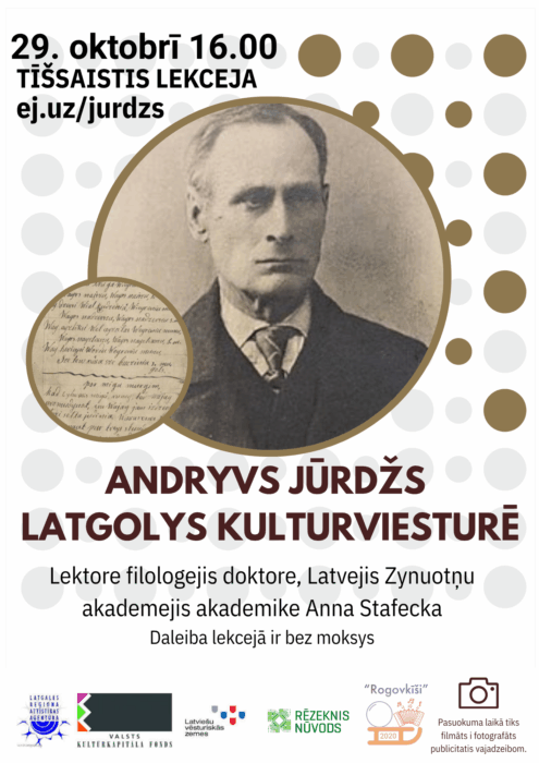 29. oktobrī 16 stuņdēs sevkuram interesentam byus vareiba dasaslēgt tīšsaistis lekcejai “Andryvs Jūrdžs Latgolys kulturviesturē”, kurū skaiteis filologejis doktore, Latvejis Zynuotņu akademejis akademike Anna Stafecka. Lekceja ir daļa nu projekta “A. Jūrdžam – 180”, kurū eistynoj bīdreiba “Rogovkīši” ar Vaļsts kulturkapitala fonda atbolstu, informej bīdreibys vaļdis lūcekle Marija Mazure.