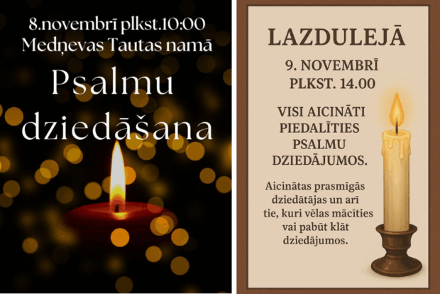 Sastdiņ, 8. novembrī, 10 stuņdēs sevkurs tiks gaideits iz saļmu dzīduošonu Medņovys Tautys nomā i svātdiņ, 9. novembrī, 14 stuņdēs Brīžucīma pogosta Lozdulejā. Aicynuots pīsavīnuot sevkurs – kai prasmeigi dzīduotuoji, tai ari tī, kas grib īsavuiceit dzīduot saļmis.