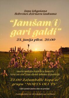 Juoņu īleiguošona Bebrenis patmaļu laukumā, piec kurys zaļumbals ar grupu “MŌRYS OLŪTS”.