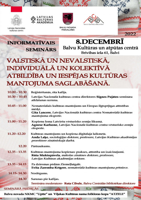 Seminars “Valstiskā un nevalstiskā, individuālā un kolektīvā atbildība un iespējas kultūras mantojuma saglabāšanā”