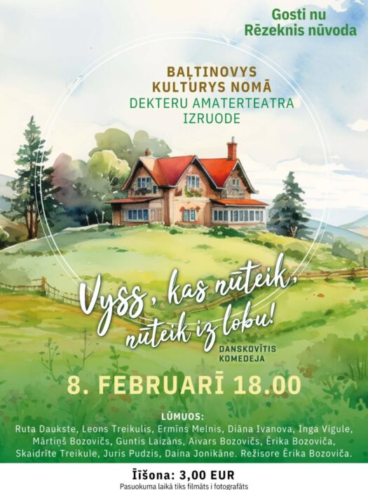 Izruodis režisors Juris Rijnieks liks akterim Zanei Daudziņai, Aldim Siliņam, Elīnai Vānei, Jānim Skanim voi Jurim Lisneram runuot ari latgaliski i īsajust mozpiļsātys dzeivē ar sirsneibu i humoru.