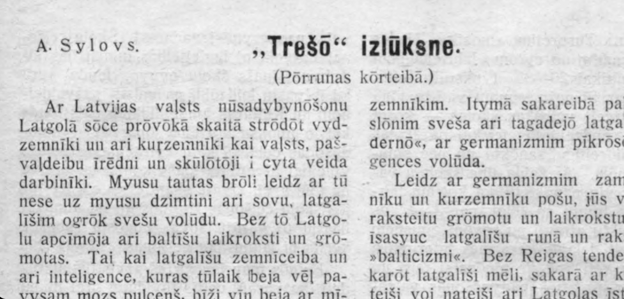 [6] Sylovs A. „Trešō” izlūksne // „Latgolas Škola”, 1934., Nr. 1.