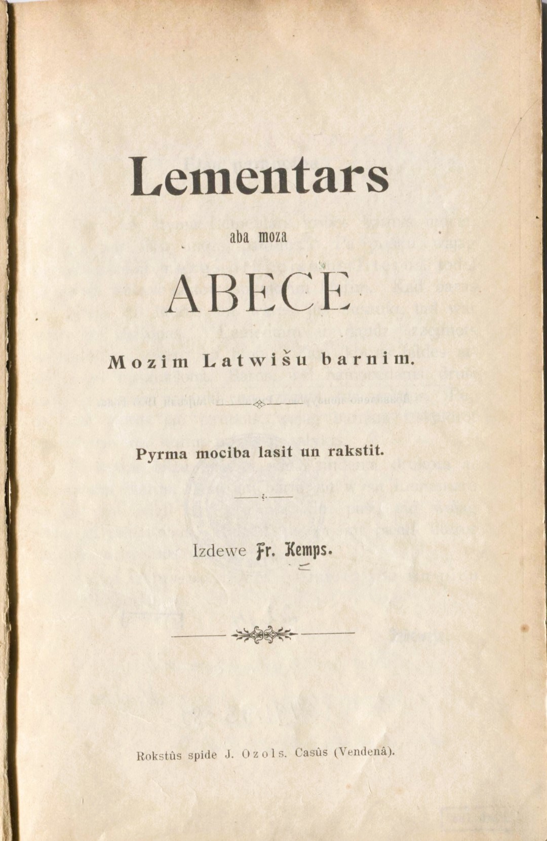 Vīns nu Franča Kempa pseidonimim beja Skomba. Zam ituo pseidonima 1914. godā Picerī tyka publiceita puorsoka „Laimes maklātuoji”[5]. Ir cylvāki, kuri itymā pluonajā gruomateņā īrauga latgalīšu pyrmū runuošonu par dzeivnīku tīseibom.