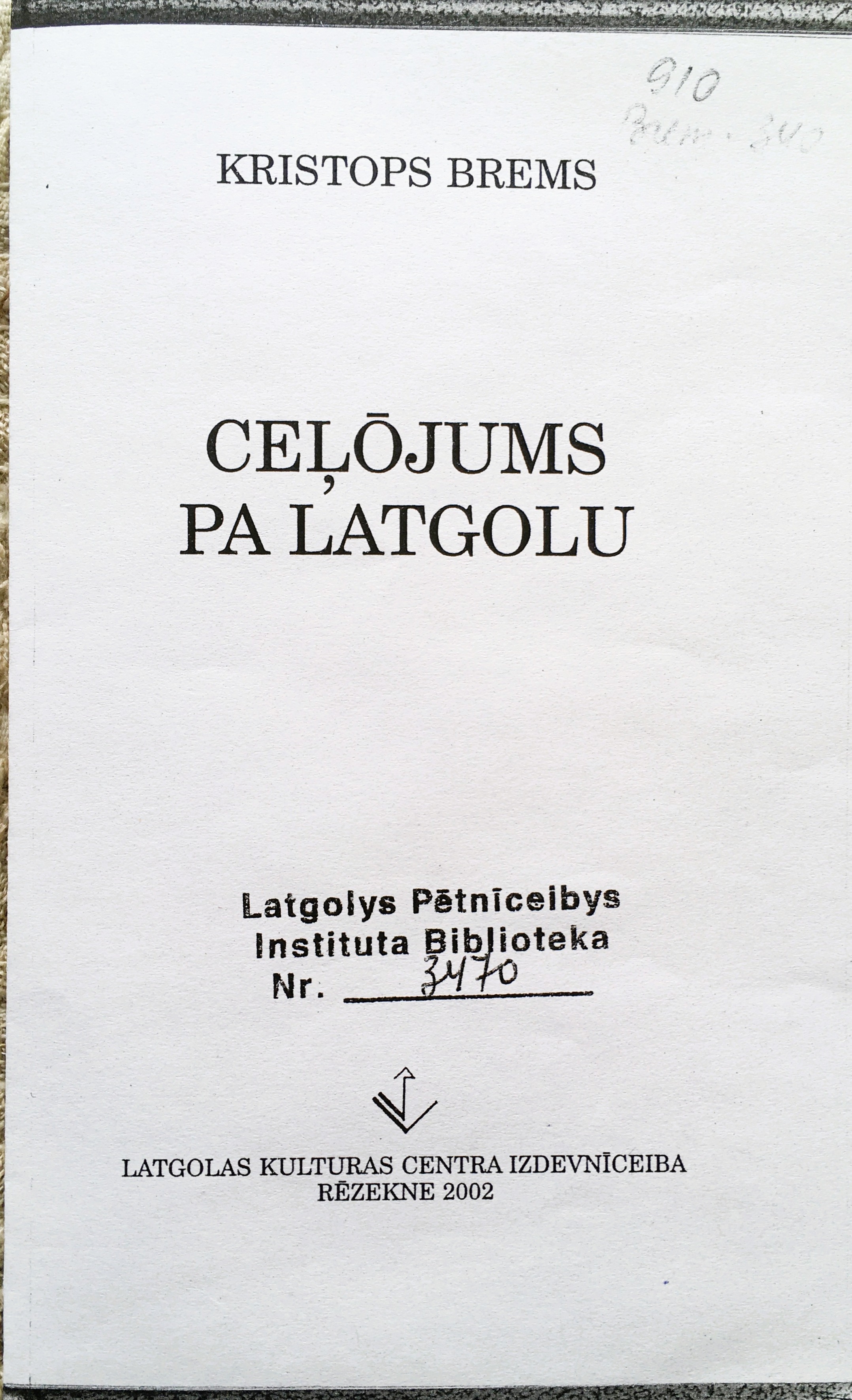 [2] Brems K. Vēstule sīvai // Brems K. Ceļōjums pa Latgolu. – Rēzekne: Latgolas Kulturas centra izdevnīceiba, 2002., 6. lpp.