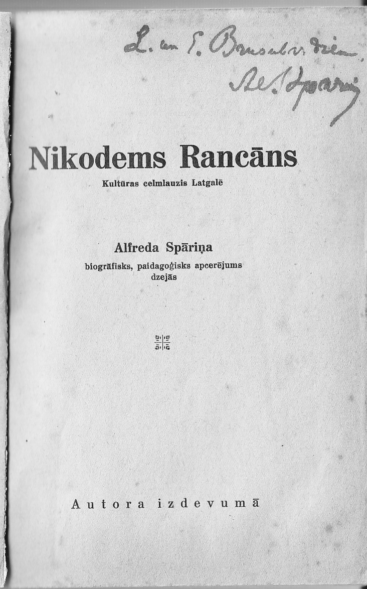 [1] Rancans N. Ticibas pamati. (Pilnigóks katechizms). – Rezekne: Dorbs un Ziniba, 1923., 100. lpp.
