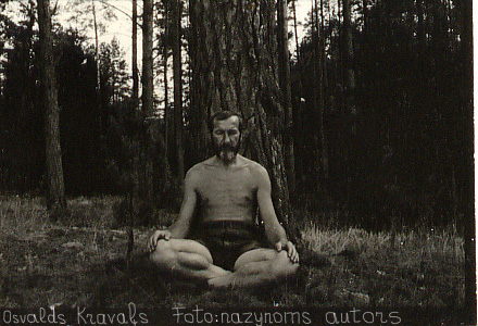 Leidzeigi kai Serens Kirkegors (leluokū dali sovu gruomotu parakstēja ar pseidonimim – 14 pseidonimi, i kotram nu 14 alter ego sova saskaņa ar publiceitū tekstu i sova specifiska filosofiskuo dūma) ci Boriss Vians (izmontuoja 24 pseidonimus), Osvalds Kravaļs sovu liriskū es sadaleja 5 personuos: Osvalds Kravaļs, Ontunejs Rīkstāns, Ašvolds Dveiņuvs, Ašvins Voldajs, Odumāns Jumiejs.