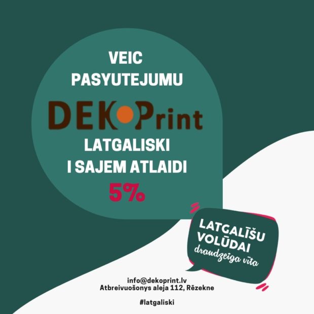 Juobyut draudzeigim latgalīšu volūdai! Tys var izapaust kai īspieja ar klientim sasarunuot latgaliski, latgaliskys produkcejis, suveniru, pakolpuojumu pīduovuošona, eipašys akcejis klientim, kurī sasazynoj latgaliski, latgalisku pasuokumu reikuošona, saziņa sovā vydā latgaliski, raksteišona latgaliski publicitatis materialūs i teiklūs i cyti veidi, kas akcejis dalinīkam var īīt pruotā.