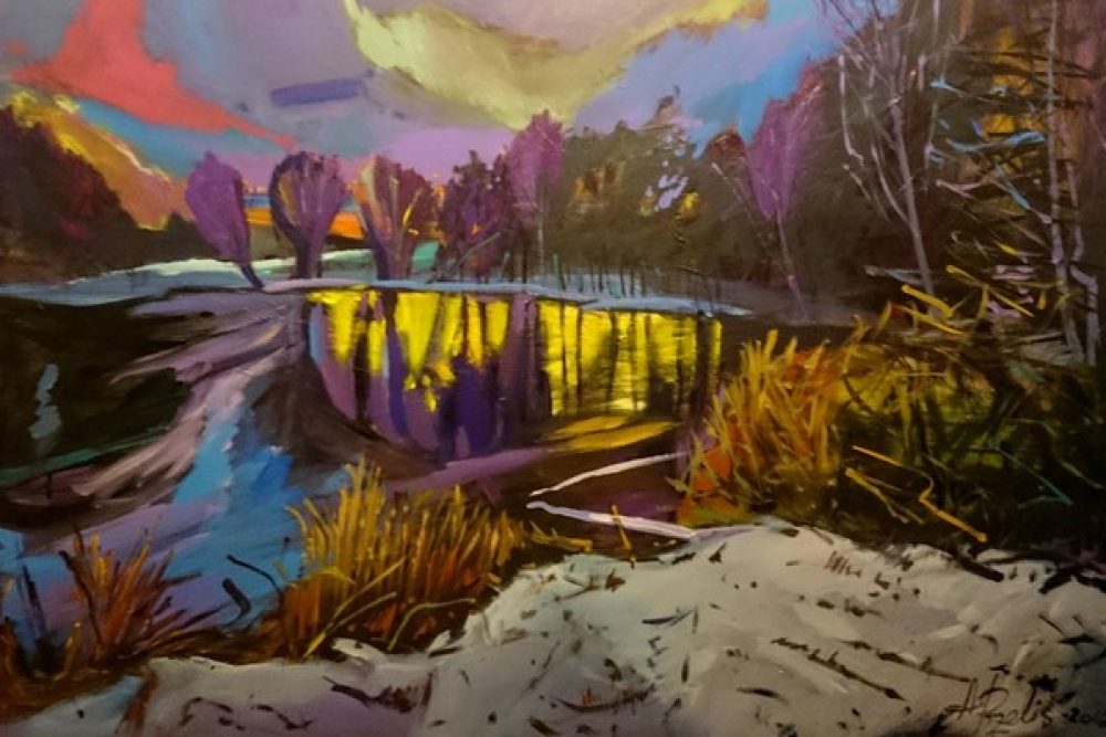 Muokslinīka Juoņa Plivdys jubilejis gleznu izstuode par Latgolys ainovu