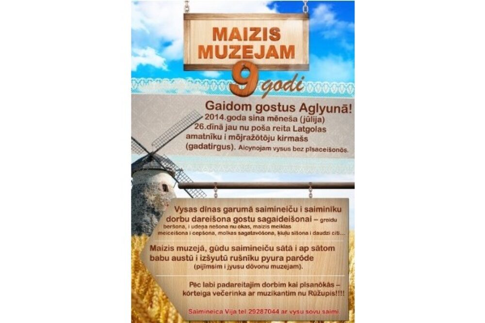Aglyunys maizis muzejs svietēs 9 godu jubileju